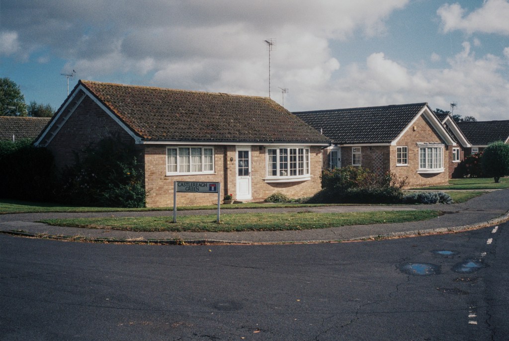 The long Downsview Road with terraced garden gates, mansard roofs with dormer windows, speedbumps, bungalows, and an occasional Art Deco rounded window, leads to a golf course, built in the 1920s, at Golf Links Road. Beyond is the new Felpham Relief Road. Much of this land is already built on or laid out for building. The new roads in those meandering estates already muddy with track marks. Waterlogged fields and the South Downs can just be seen from the golf club carpark. Blake walked frequently and recorded “…the sweet air and the voices of winds, trees and birds, and the odors of the happy ground, makes it a dwelling for immortals”.