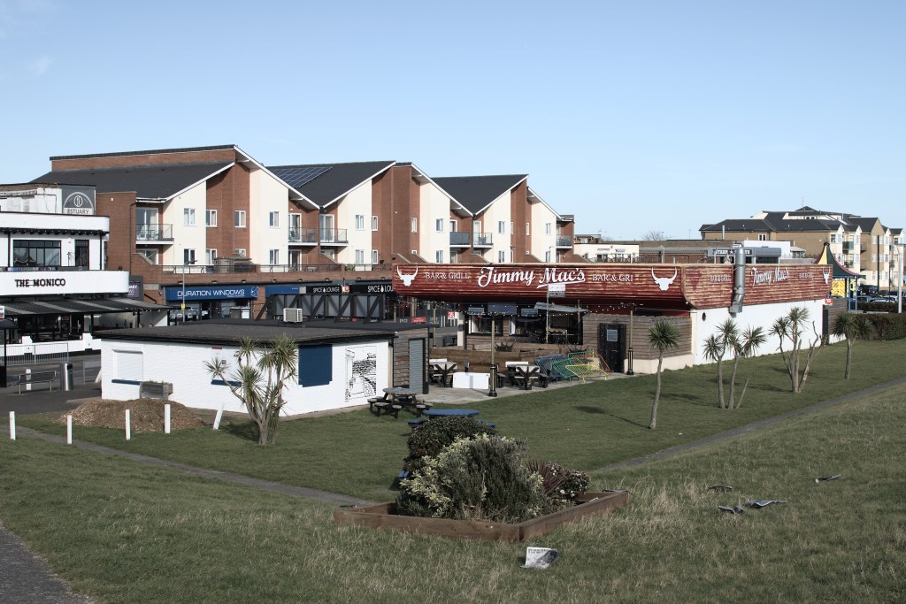 The road out of Southend was slow though Leigh on Sea and Hadleigh. Saturday morning traffic. The view of the Thames Estuary from the top of Vicarage Hill is spectacular in almost blinding day light. We made our way onto Canvey Island under the line to Fenchurch Street and over the Benfleet Creek. I have been to Canvey before. I remember seeing a mother and an adult son on the beach by the groins at low tide. Orthodox Jews. A sign of the new community from Stamford Hill in North London? Murals of the high sea wall commemorate the devastating flood of 1953. In places the sea wall was washed away. In Labworth Park there is a funfair, an American style diner, and a café named after a boxer.